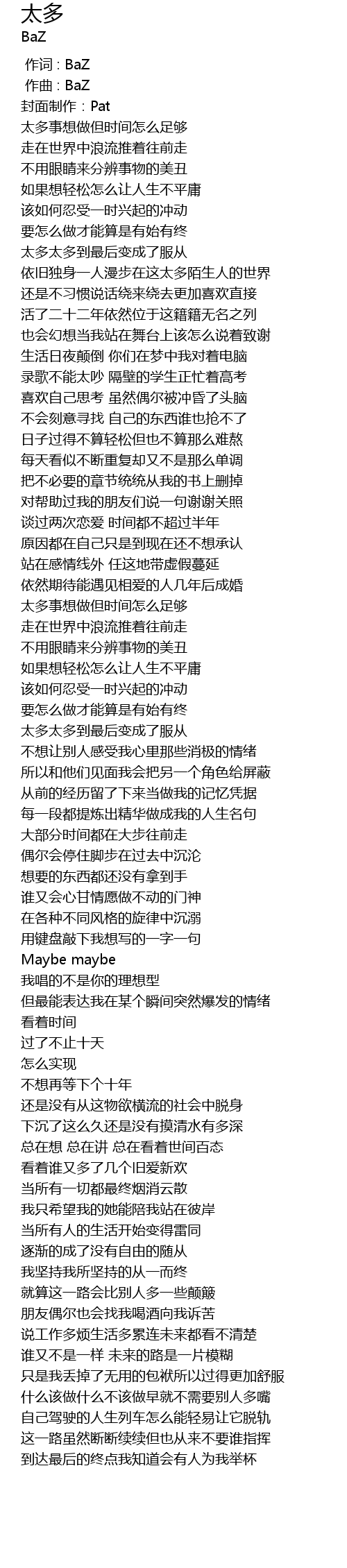 | [00:00.000] | 作词 : BaZ |