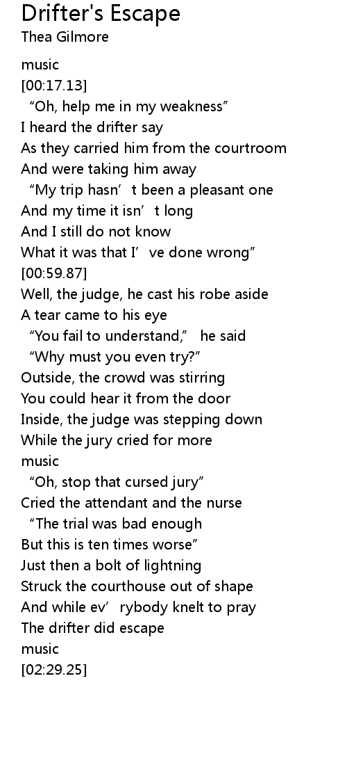 | [02:17.50] | The drifter did escape |