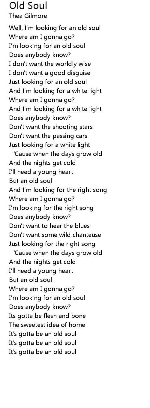 | Well, I'm looking for an old soul | |