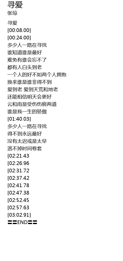 | [02:01.22] | duō shǎo rén yí lù zài xún zhǎo |