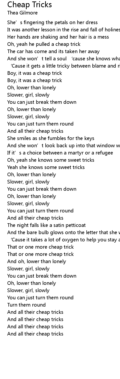 | And she won’t tell a soul ‘cause she knows what they would say | |