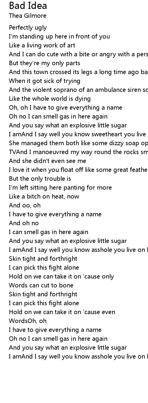 I amAnd I say well you know sweetheart you live on bad ideas |