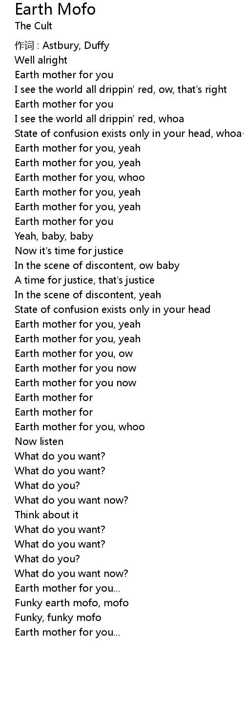 | Earth mother for you, yeah | |