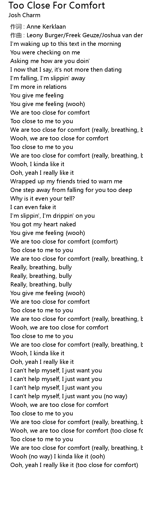| [01:26.577] | We are too close for comfort (comfort) |
