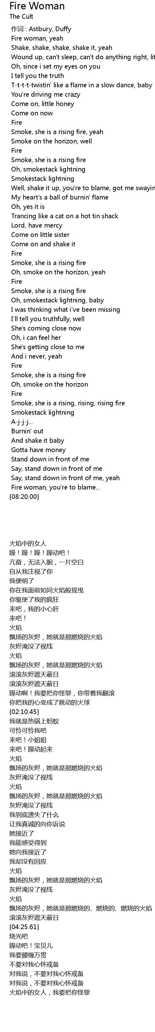 | [00:14.71] | Fire woman, yeah |