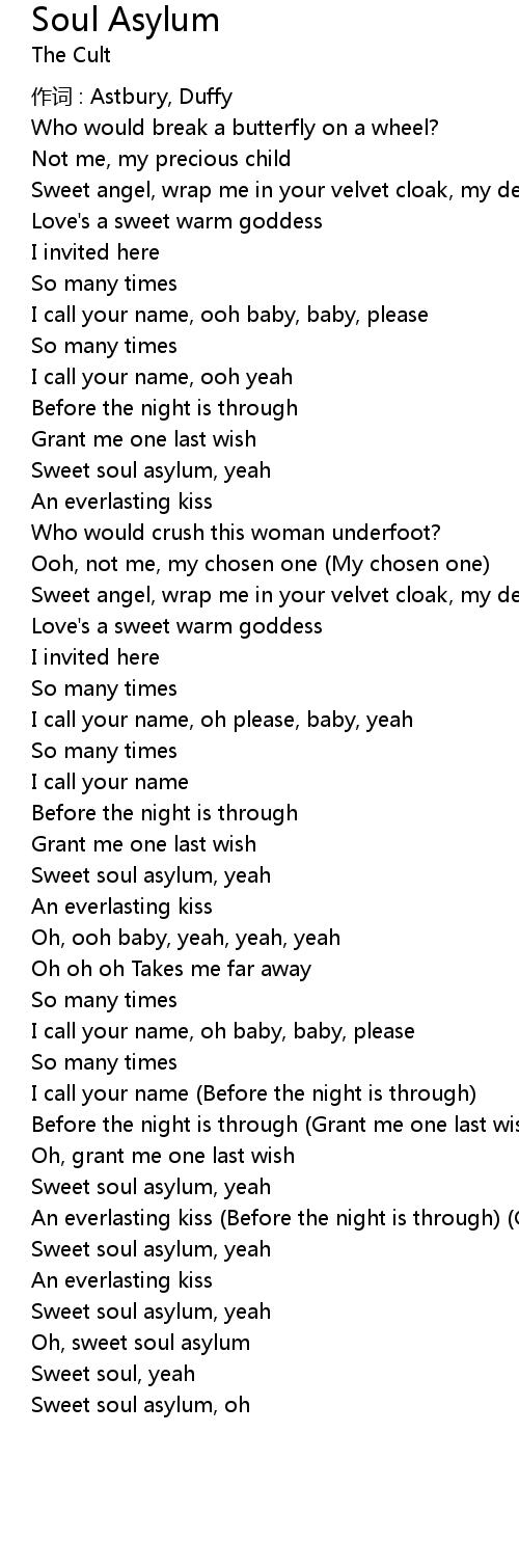 | Sweet soul asylum, oh |