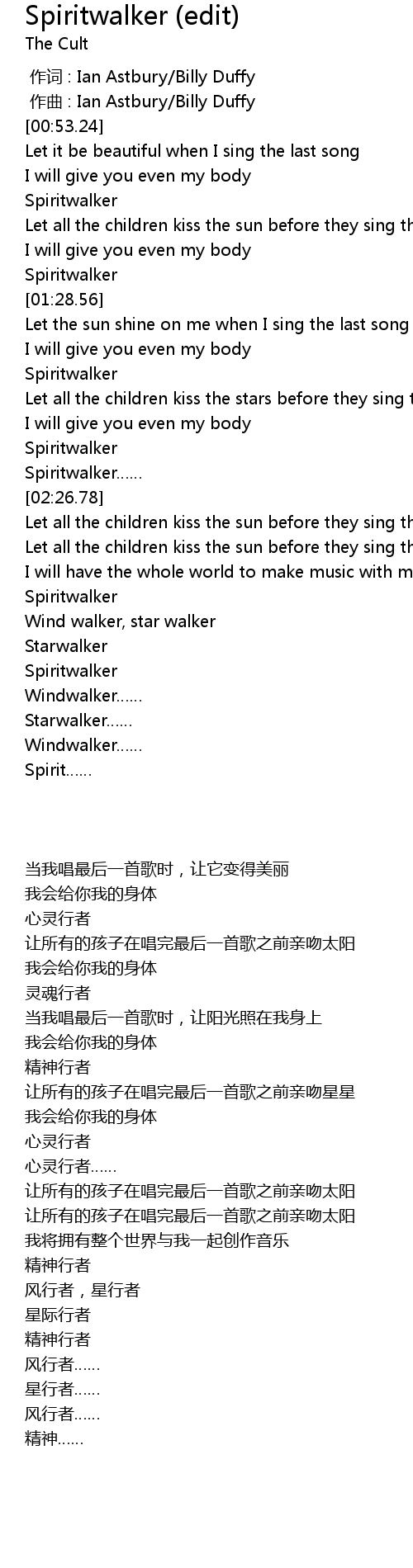 | [00:00.000] | 作词 : Ian Astbury/Billy Duffy |