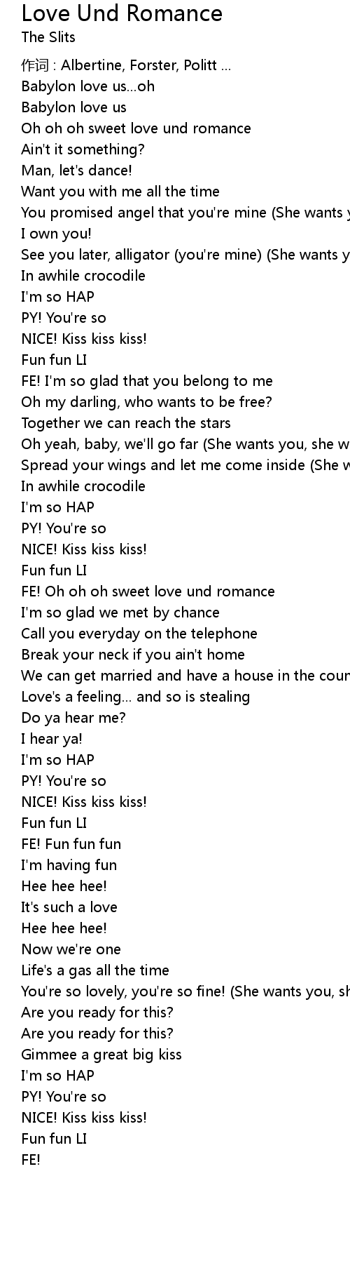 | See you later, alligator you' re mine She wants you, she wants you | |