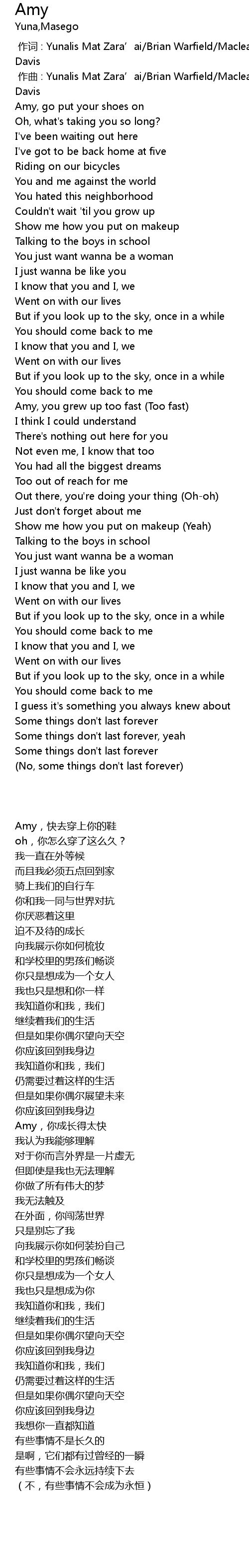 | [01:19.96] | Amy, you grew up too fast (Too fast) |