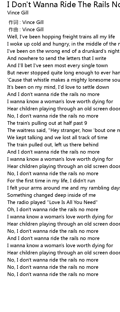 | [03:23.478] | And I don' t wanna ride the rails no more |