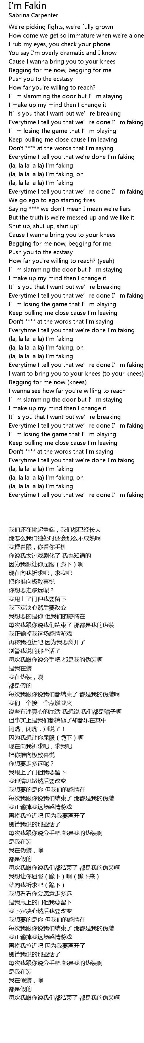 | [00:54.40] | (la, la la la la) I'm faking |