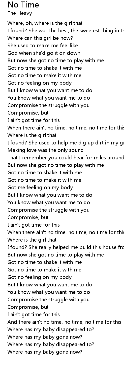 When there ain't no time, no time, no time for this |