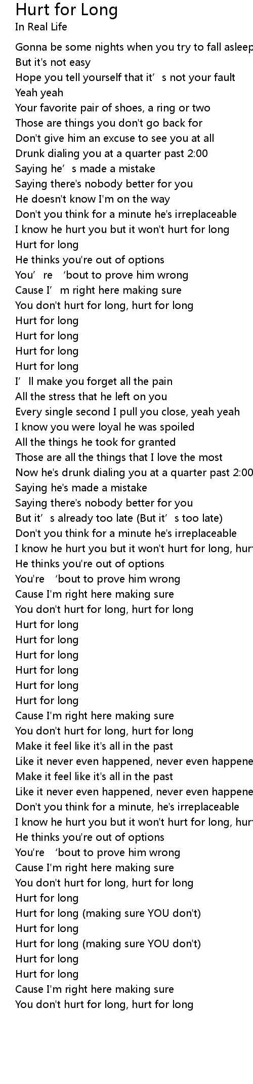 | [02:51.42] | You don't hurt for long, hurt for long |