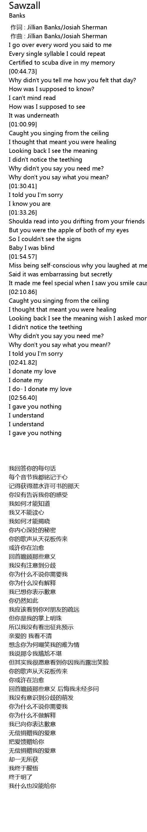 | [00:00.00] | 作词 : Jillian Banks/Josiah Sherman |