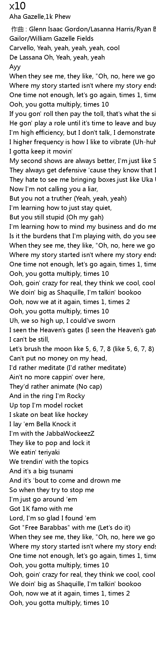 | [01:11.45] | Ooh, you gotta multiply, times 10 |