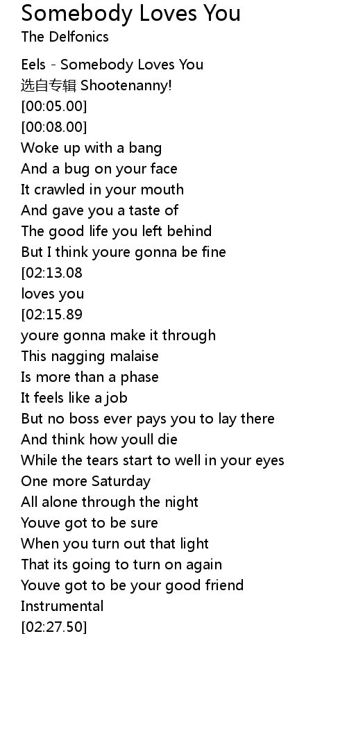| [00:01.00] | Eels Somebody Loves You |