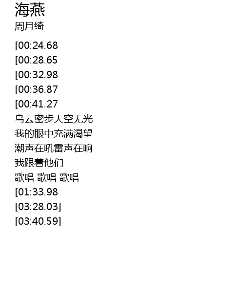 | [03:06.70][00:41.27] | 啊.... 啊... |