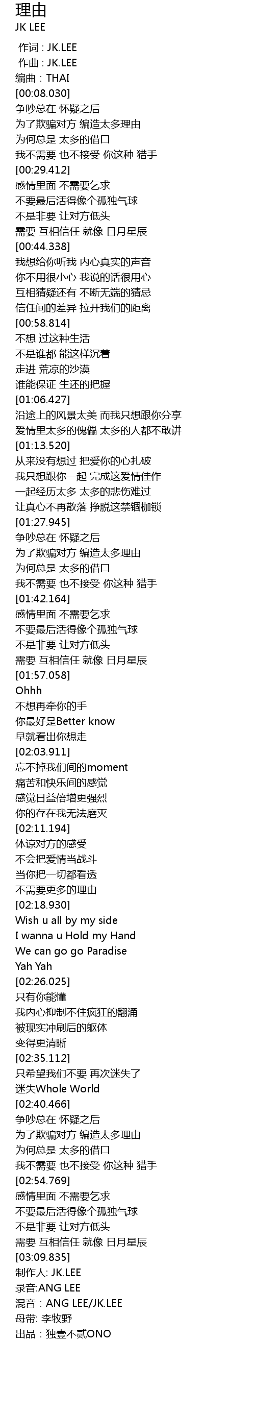| [02:17.196] | bù xū yào gèng duō de lǐ yóu |