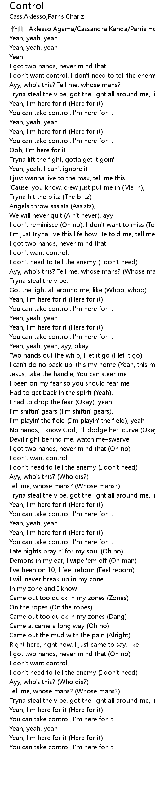 | [00:00.00] | 作曲 : Aklesso Agama/Cassandra Kanda/Parris Hoskins |