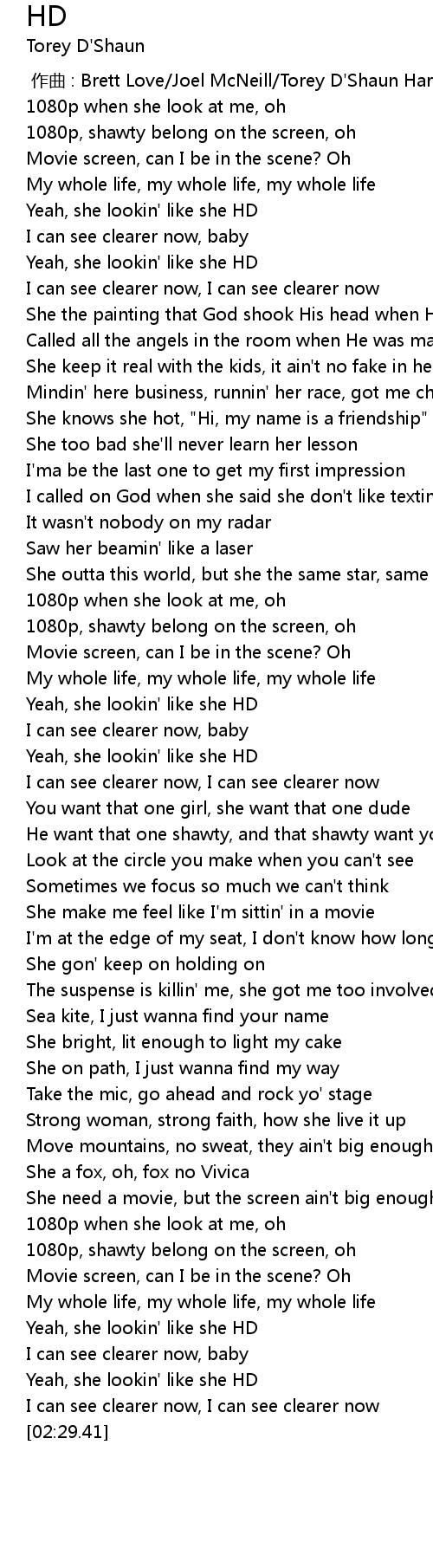 | [02:23.52] | Yeah, she lookin' like she HD |