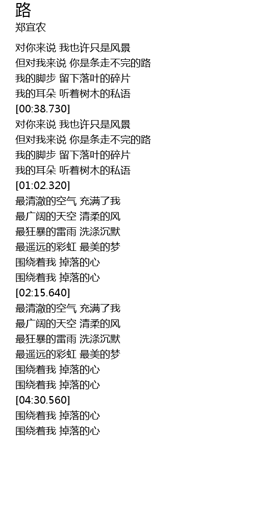 | [00:47.810] | 但对我来说 你是条走不完的路 |