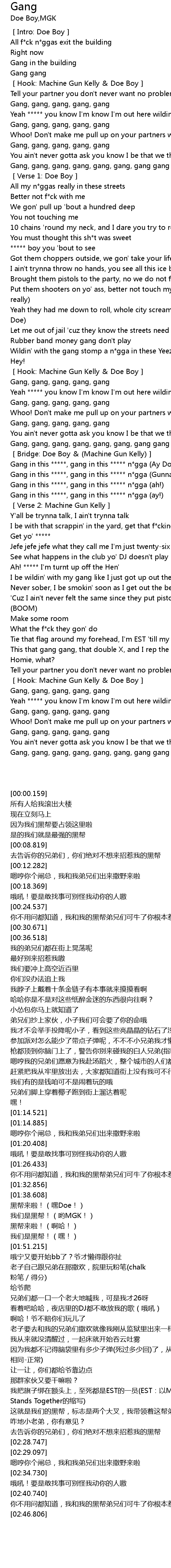 | [02:46.806] | Gang, gang, gang, gang, gang, gang, gang gang gang |