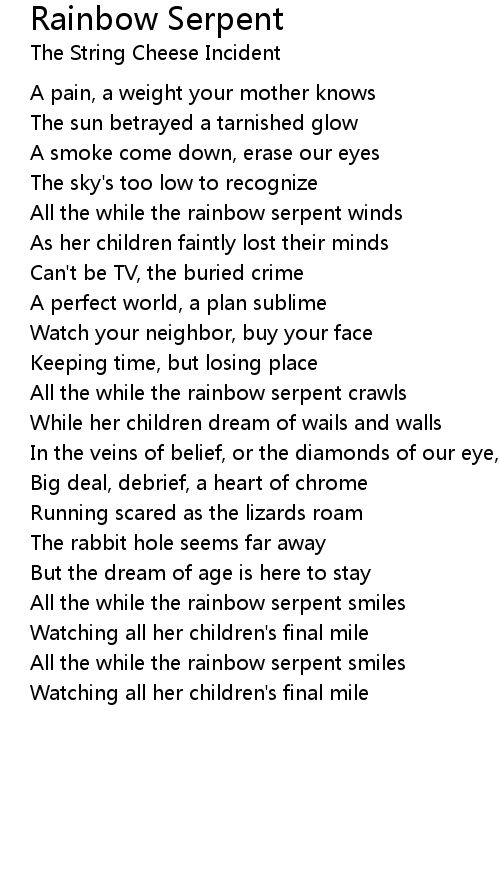 All the while the rainbow serpent crawls |