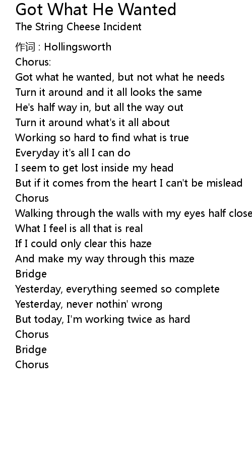 | Song | Got What He Wanted |
