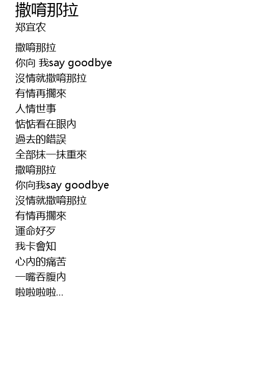 | [00:36.92] | nǐ xiàng wǒ say goodbye |