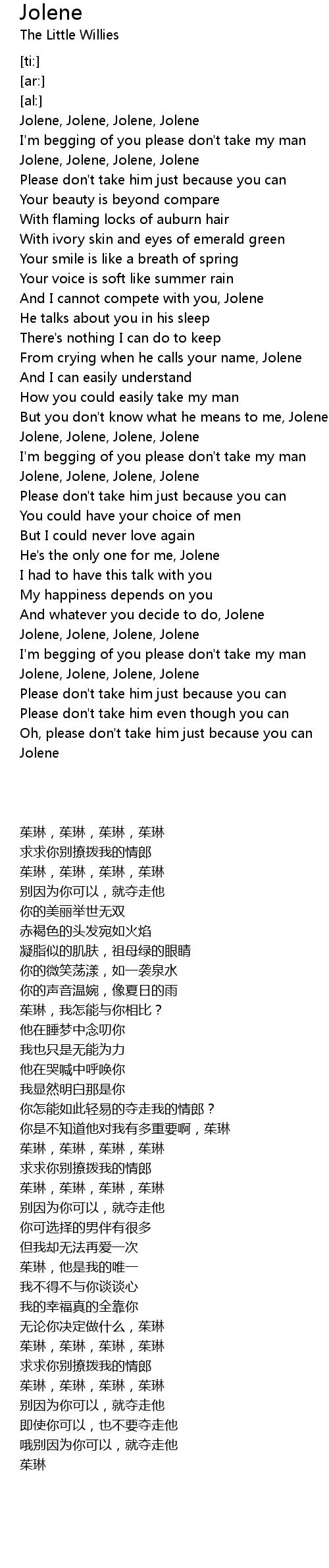 Jolene, Jolene, Jolene, Jolene |