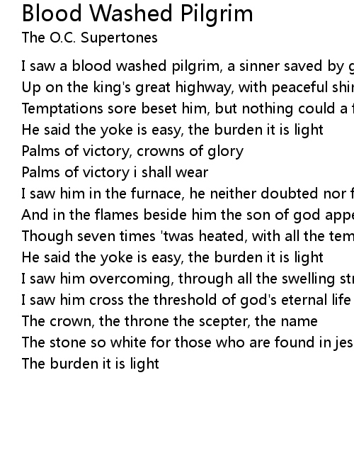 I saw a blood washed pilgrim, a sinner saved by grace |