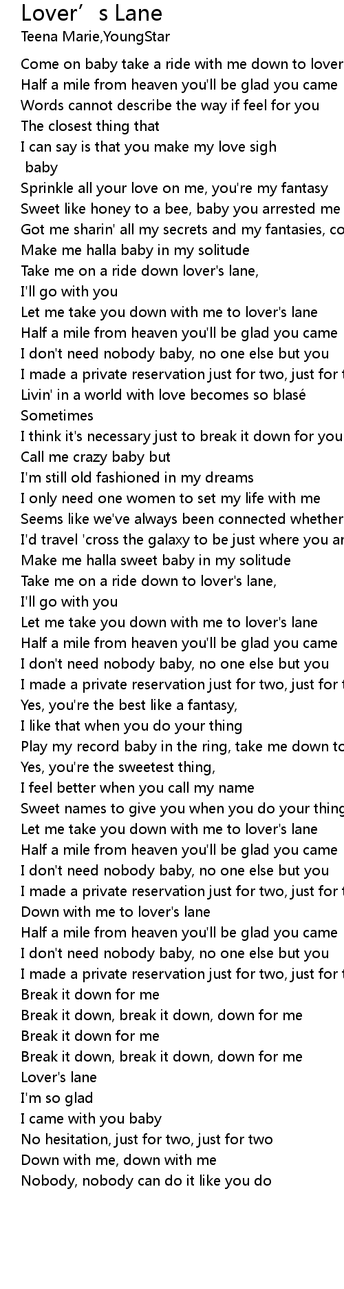 | Play my record baby in the ring, take me down to lovers' lane | |