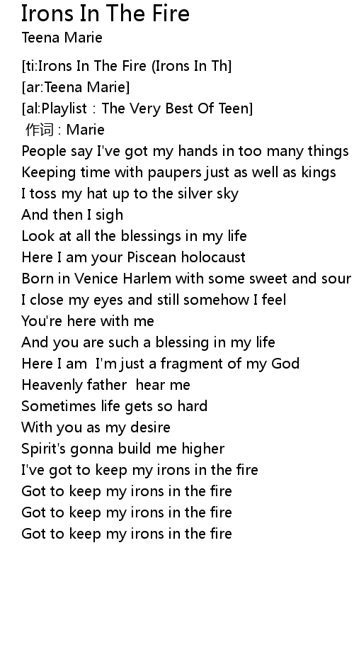 | [02:24.240] | I' ve got to keep my irons in the fire |