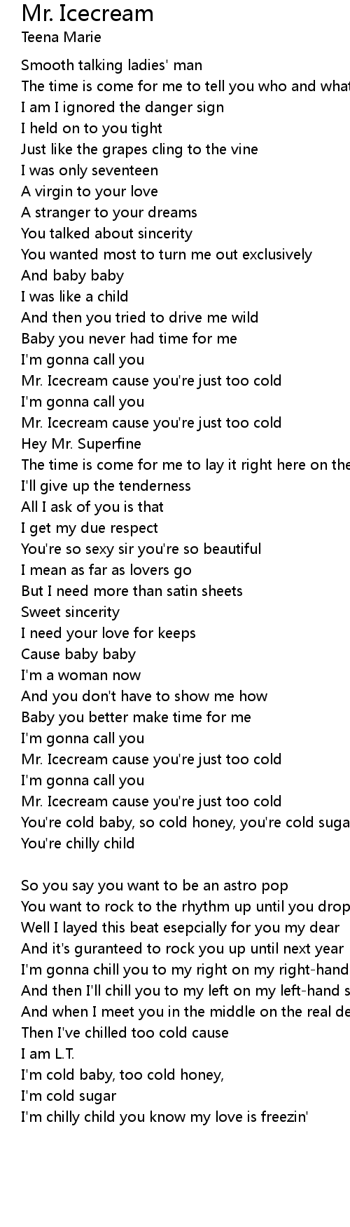 Mr. Icecream cause you're just too cold |