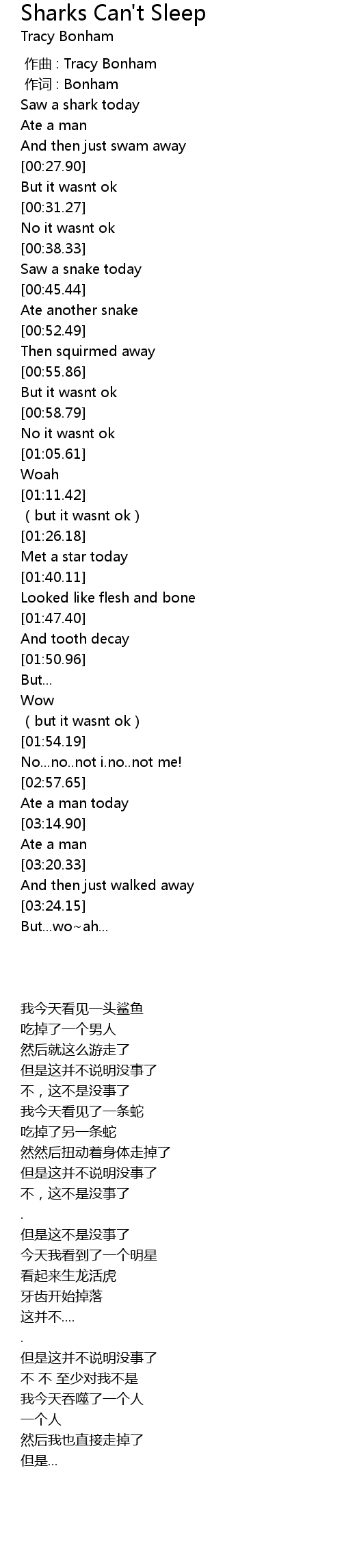 | [00:15.67] | Saw a shark today |
