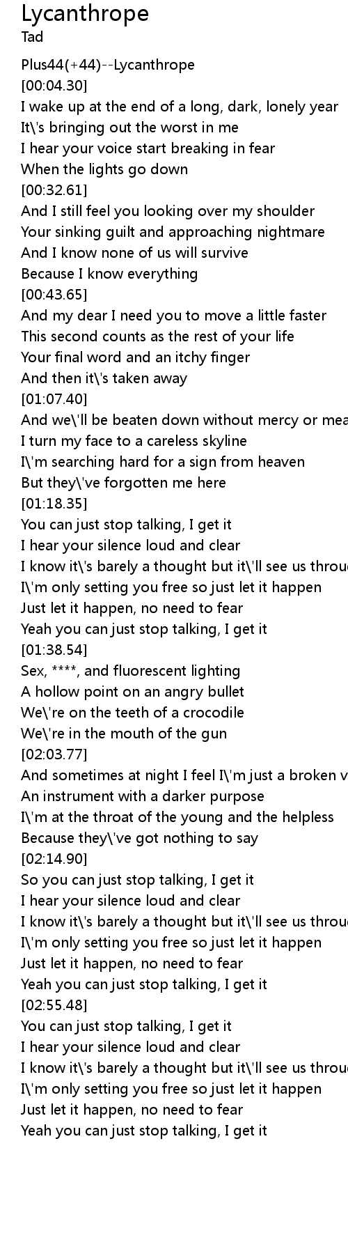 | [00:01.87] | Plus44(+44)--Lycanthrope |