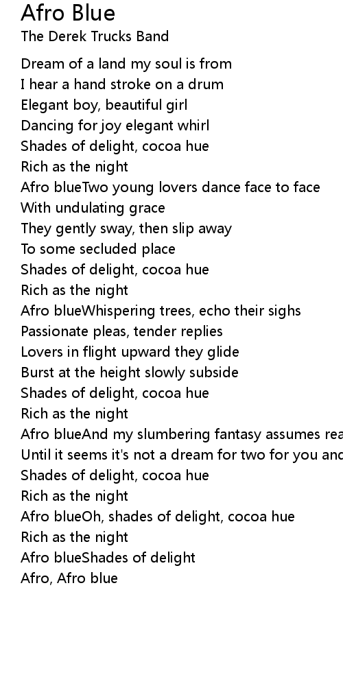 Afro blueAnd my slumbering fantasy assumes reality |