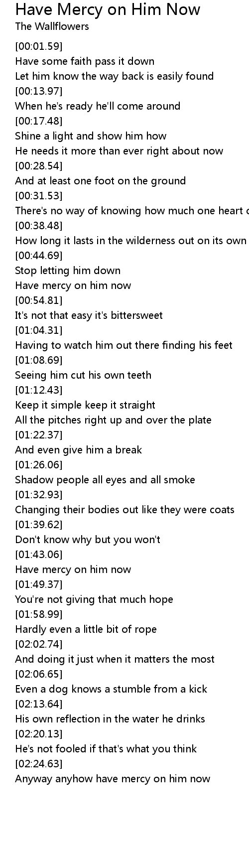 Anyway anyhow have mercy on him now |