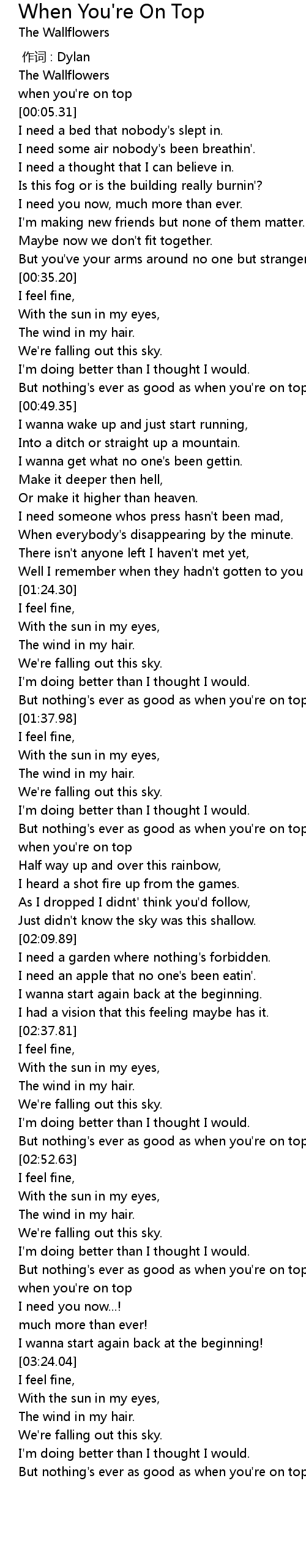 | [02:48.48] | But nothing' s ever as good as when you' re on top. |