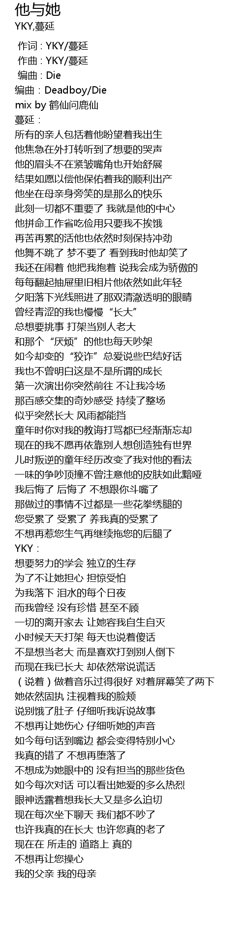 | [00:00.962] | zuò qǔ : YKY màn yán |
