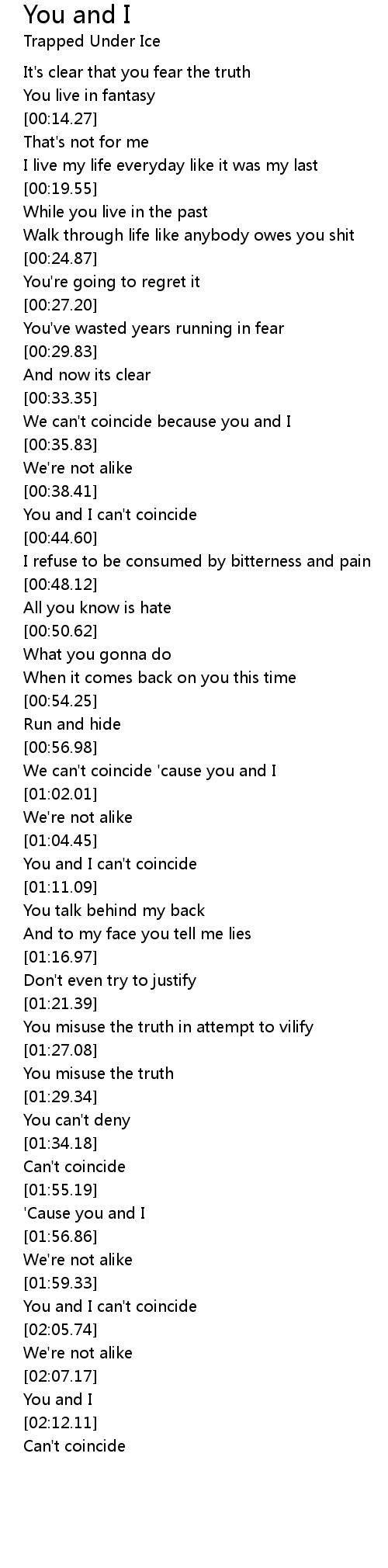 We can't coincide 'cause you and I |