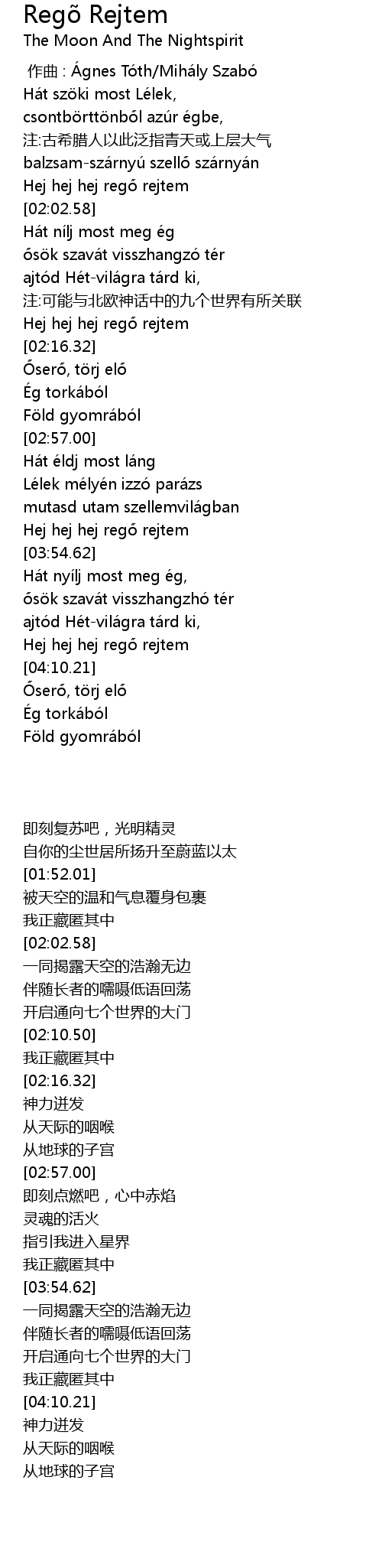 | [00:00.000] | zuò qǔ : Á gnes Tó th Mihá ly Szabó |