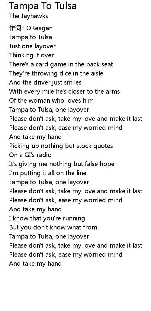 | Song | Tampa To Tulsa |