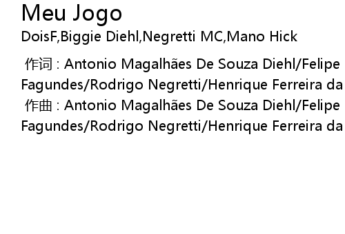 | [00:00.00-1] | 作词 : Antonio Magalhães De Souza Diehl/Felipe De Abreu Fagundes/Rodrigo Negretti/Henrique Ferreira da Silva |