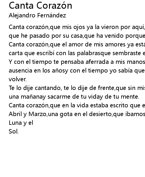 | Canta corazó n, que el amor de mis amores ya está aquí, que he guardado cada carta que escribí con las palabrasque sembraste en cada beso que te dí. | |