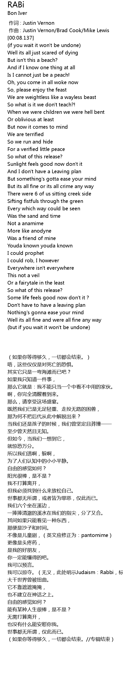 | [00:00.000] | zuò cí : Justin Vernon |