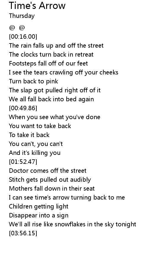 I can see time's arrow turning back to me |