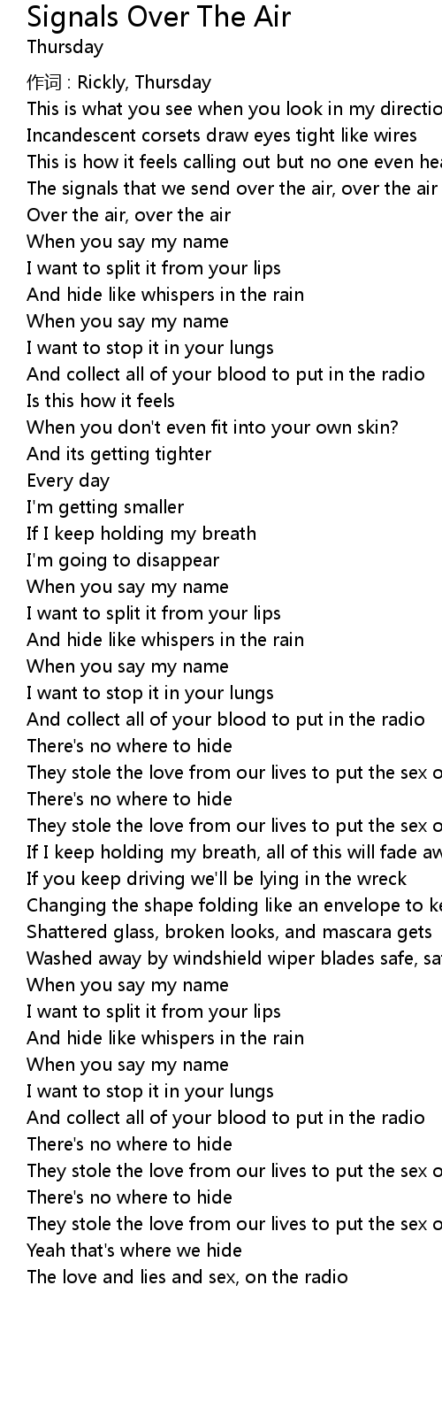 | Song | Signals Over The Air |