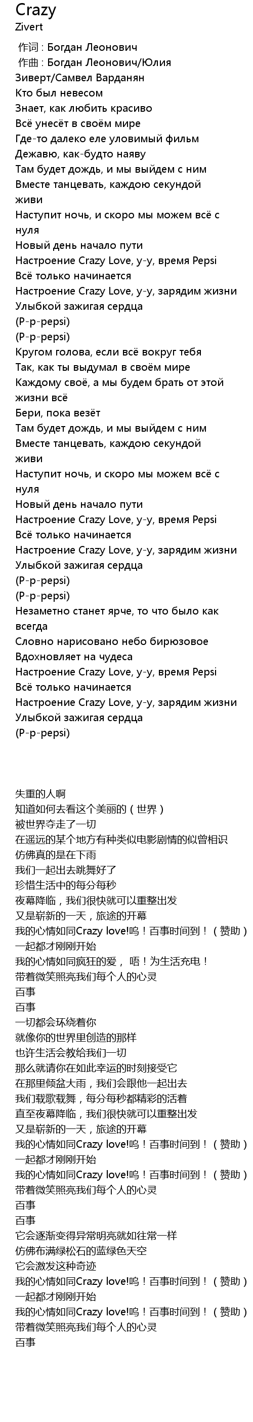 Настроение Crazy Love, у-у, время Pepsi |