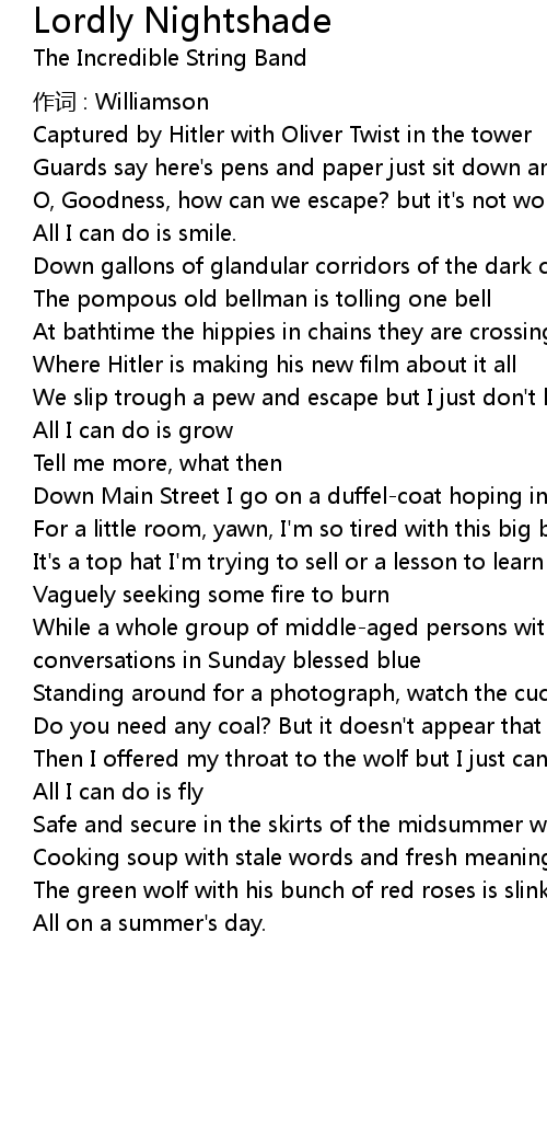 | Song | Lordly Nightshade |